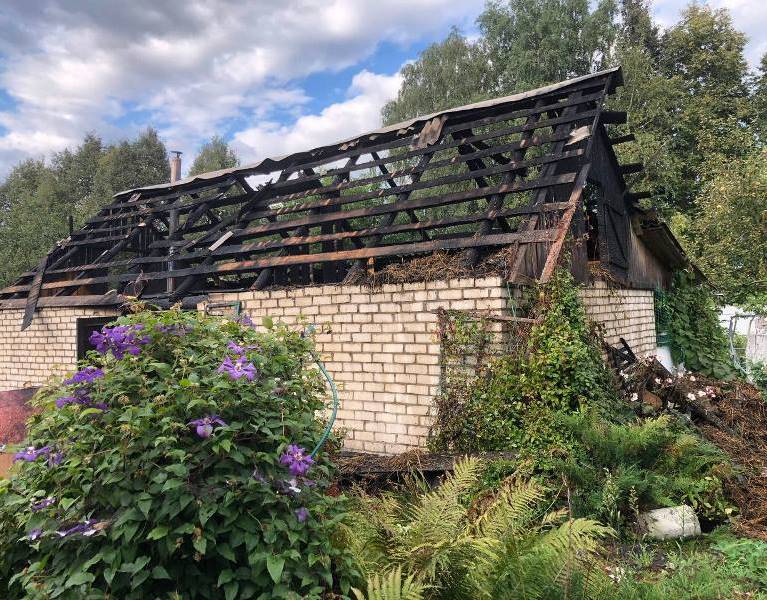В результате пожара уничтожена кровля, перекрытие и имущество в доме.