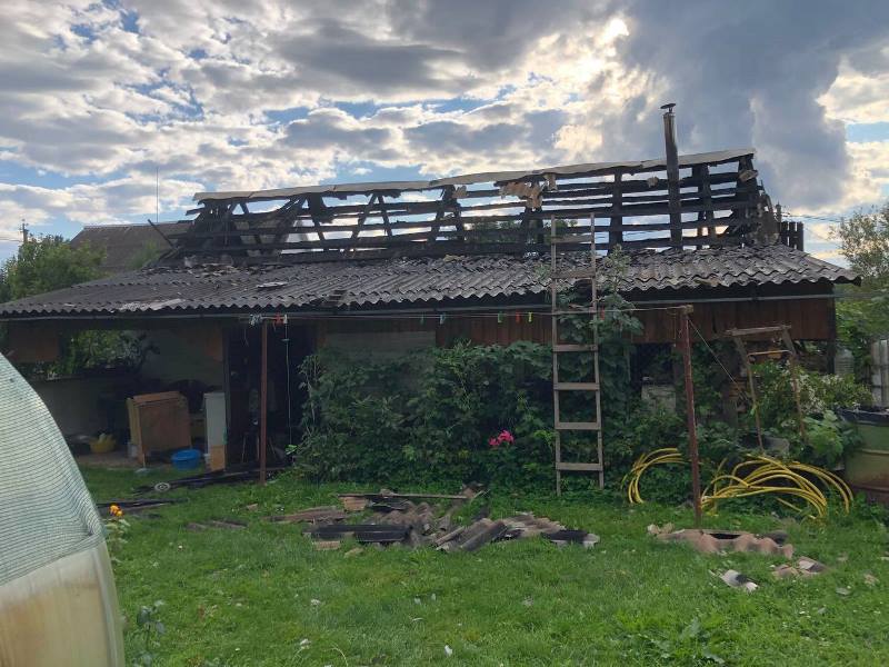 В результате пожара уничтожено 20 кв.м кровли и перекрытия сарая, пристройка уничтожена полностью.