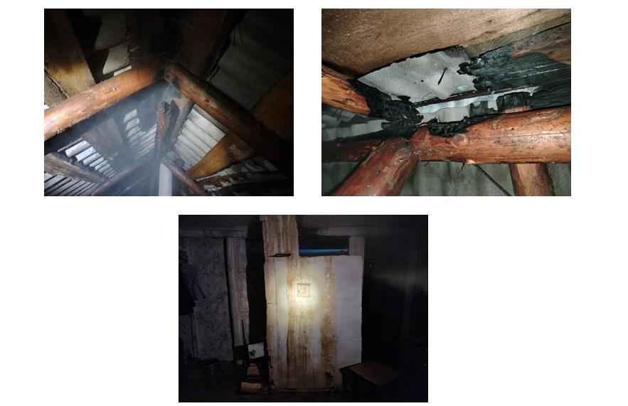 В результате пожара уничтожена 6 метров квадратных кровли, повреждено перекрытие, стены и дрова.