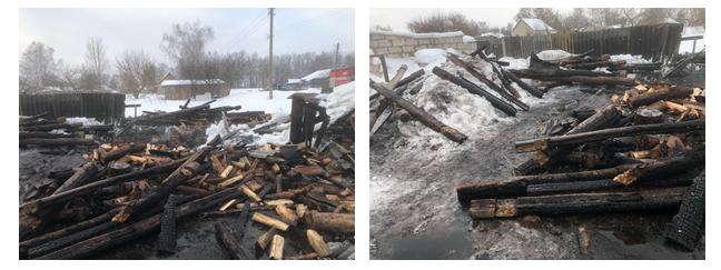 В результате пожара уничтожена кровля дома и частично кровля веранды; повреждены перекрытия, стены, имущество в доме и в веранде. Спасен соседний жилой дом и две хозяйственные постройки.