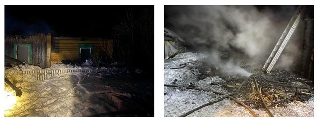 По прибытии к месту вызова подразделений МЧС происходило открытое горение дома по всей площади, кровля и перекрытие дома частично обрушились внутрь, создалось плотное задымление.