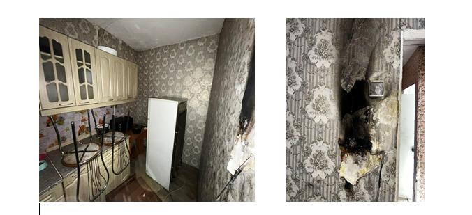 В результате пожара повреждена розетка, закопчена стена в блоке.