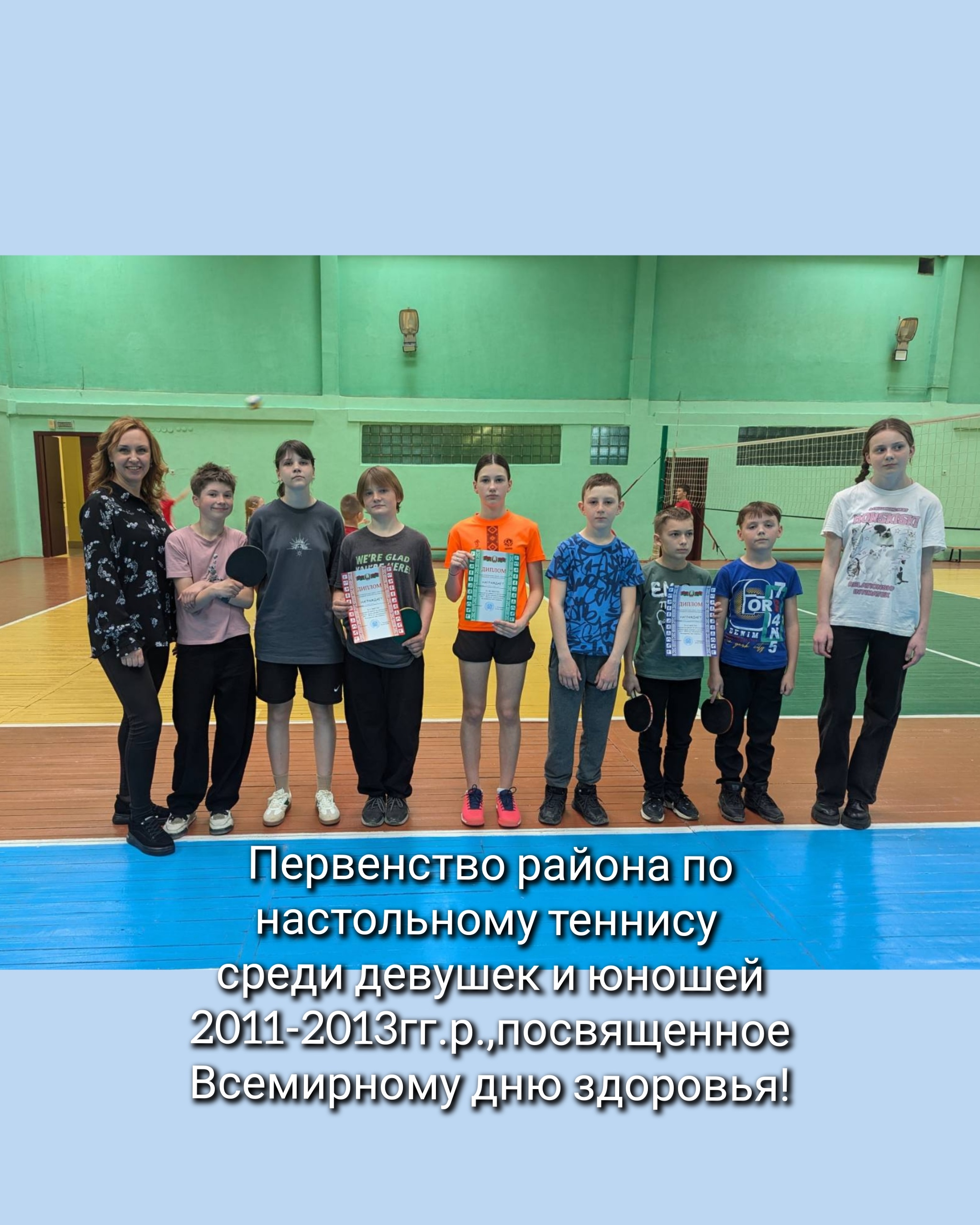 10 апреля 2025 года в рамках празднования Всемирного дня здоровья, на базе ГУО «СШ №3 г. Климовичи» прошло первенство района по настольному теннису среди девушек и юношей 2011-2013 гг.р. В соревнованиях приняли участие ребята из ГУО «СШ №3 г. Климовичи», Гимназии и Тимононовской СШ. Итоговые места: 1 место ГУО «СШ №3 г. Климовичи» (1 команда), 2 место Тимононовская СШ, 3 место ГУО «СШ №3 г. Климовичи» (2 команда).