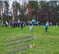 1 мая 2025 года в городской роще прошли мероприятия, посвященные Празднику труда. В рамках празднования была организована и спортивно-массовая работа, работники коллективов предприятий и учреждений всего района приняли участие в спортивном конкурсе "Мир!Труд!Май!"