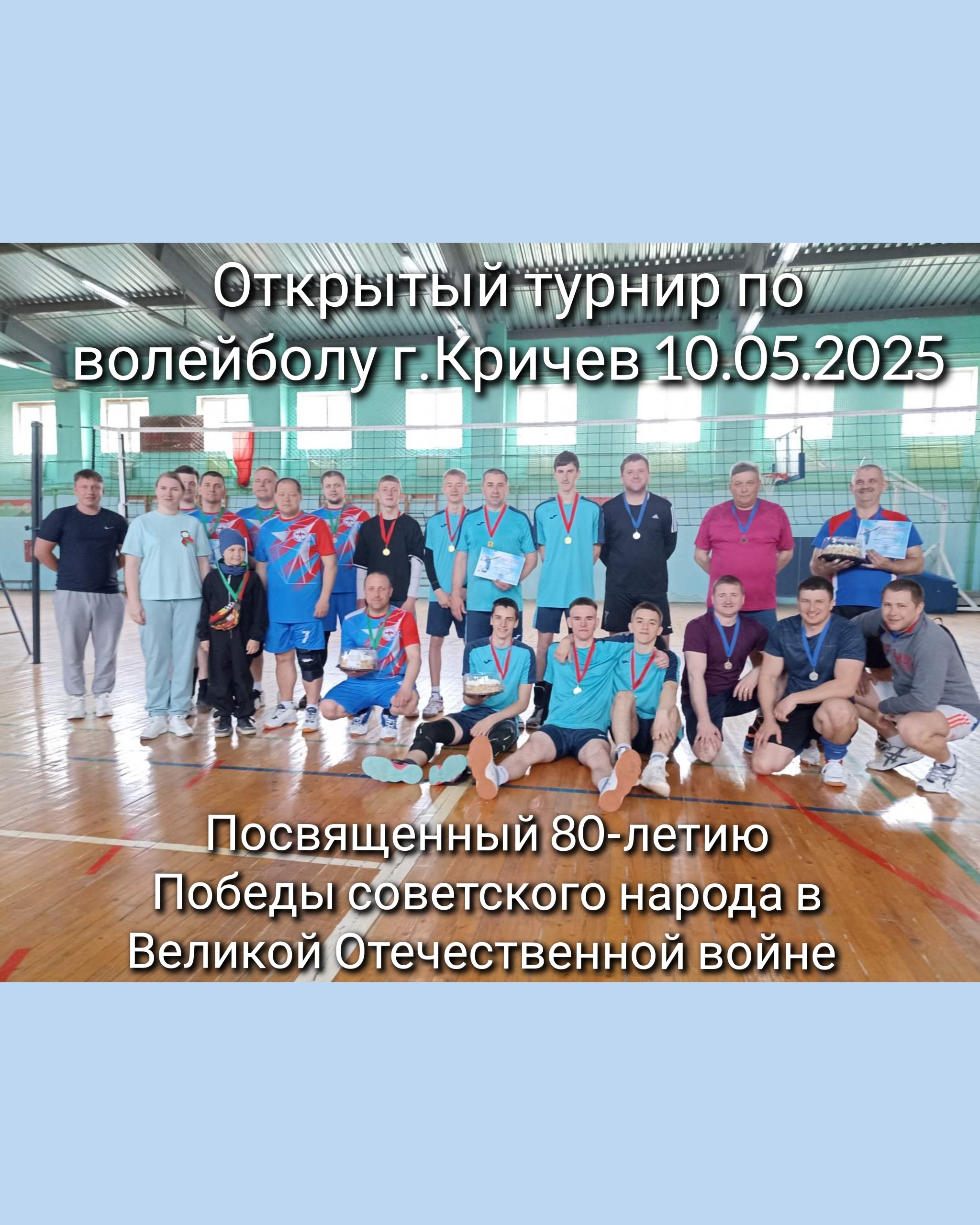 10 мая 2025 года в г. Кричев прошел открытый турнир по волейболу, посвященный 80-летию Победы советского народа в Великой Отечественной войне. В соревнованиях приняли участие 6 команд из Кричева (3 команды), Климовичей (2 команды)и Могилева. Итоговый пьедестал: 1 место Климовичи, 2 место Кричев ФОК, 3 место Кричев БЦЗ-3.