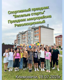 19 июля 2025 года прошел спортивный праздник "Веселые старты", посвященный празднику микрорайона Революционный, который провели специалисты отдела по физкультурно-оздоровительной и спортивно-массовой работе СУСУ "Климовичская ДЮСШ".