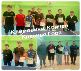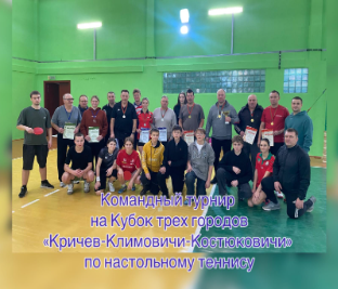 6 декабря 2025 года на базе ГУО «СШ №3 г.Климовичи» прошел командный турнир на Кубок трех городов «Кричев-Климовичи-Костюковичи» по настольному теннису. В турнире приняло участие 6 команд: Костюковичи, Кричев, Кричев-дети, Климовичи, Климовичи-дети и КГАК. Итог турнира: 1 место Кричев, 2 место Климовичи, 3 место Костюковичи.