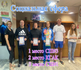 В социальной сфере: 1 место - ГУО «СШ №3 г.Климовичи», 2 место - КГАК, 3 место - ГУО «СШ №1 г.Климовичи». В производственной сфере: 1 место - Коммунальник, 2 место - ЛВЗ, 3 место - КХП.