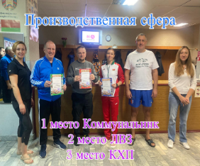 Итоговые места в социальной сфере: 1 место ГУО «СШ №3 г.Климовичи», 2 место ГУО «СШ №4 г.Климовичи», 3 место ГУО «СШ №1 г.Климовичи». Итоговые места в производственной сфере: 1 место ЛВЗ, 2 место Коммунальник, 3 место КХП.